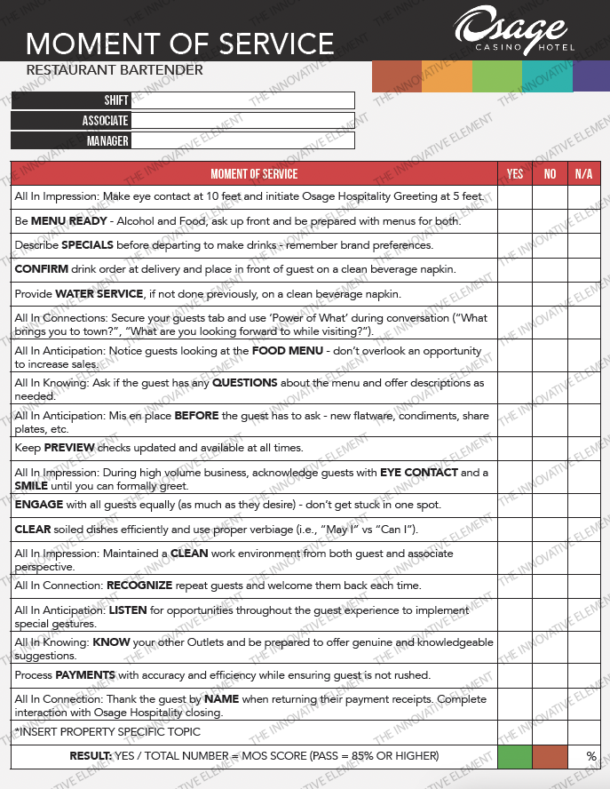 Moment of Service Pad - Restaurant Bartender